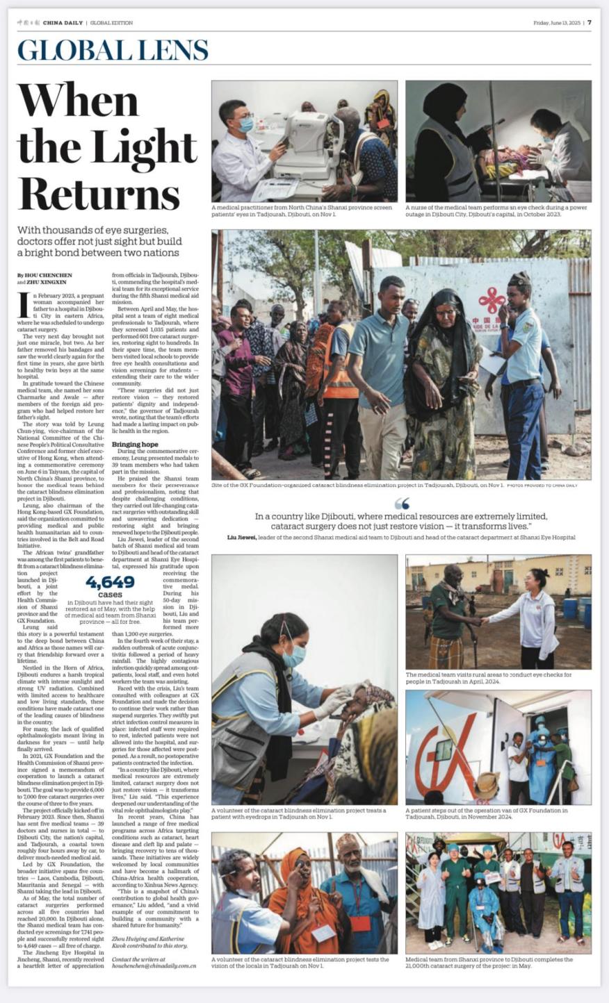 《中國(guó)日?qǐng)?bào)國(guó)際版》6月13日第7版Global Lens欄目截圖數(shù)千例眼科手術(shù)背后,山西援外醫(yī)療隊(duì)醫(yī)生們不僅為非洲患者重賦光明,更在兩國(guó)間架起友誼之橋。