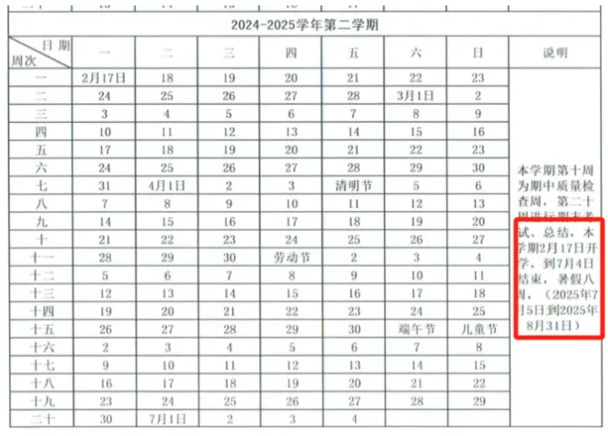 據(jù)忻州市教育部門發(fā)布的2024至2025學(xué)年度第二學(xué)期校歷,2025年全市中小學(xué)將在6月底迎來考試周,7月5日正式放暑假。