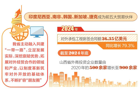 對外投資和工程承包業(yè)務(wù)同樣是我省共建“一帶一路”的一大亮點(diǎn)。2024年不斷完善海外綜合服務(wù)體系,非金融類直接投資達(dá)6517萬美元,同比大增408.7%。這表明山西省企業(yè)加快了“走出去”的步伐,積極在海外布局,拓展國際投資領(lǐng)域,尋求更廣闊的發(fā)展空間和資源。同時(shí),對外承包工程新簽合同額36.35億美元,同比增長79.3%。截至2024年底,山西省外商投資企業(yè)數(shù)量由2020年的500余家增長至900余家。