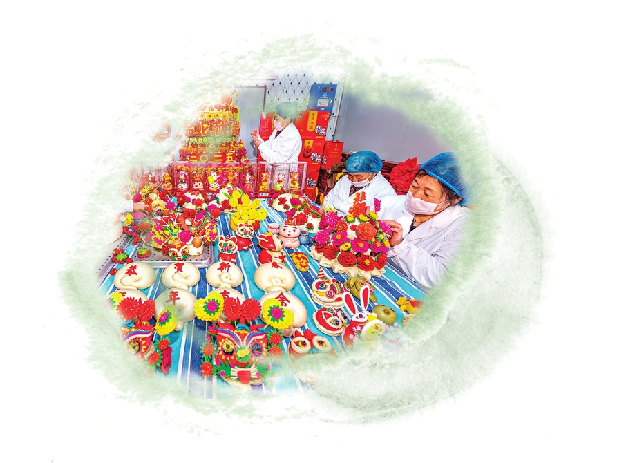 在萬榮縣解云仙花饃店里,民間藝人正在捏制獨(dú)具晉南特色、栩栩如生的面塑花饃。薛俊攝