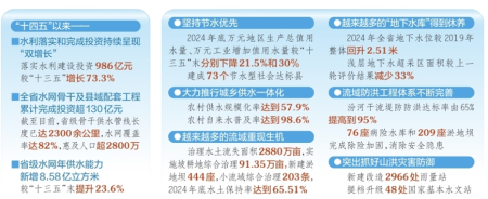 “十四五”以來,我省全力開展母親河復(fù)蘇、幸福河湖建設(shè)行動(dòng),在全國(guó)率先公布縣級(jí)以上母親河名錄,重點(diǎn)打造4條國(guó)家級(jí)、104條省級(jí)幸福河湖,優(yōu)先把各市縣母親河建設(shè)成為幸福河;“一泓清水入黃河”6大類40項(xiàng)水利工程逐步建成達(dá)效,越來越多的河流恢復(fù)了生命。全省治理水土流失面積2880萬畝,實(shí)施坡耕地綜合治理91.35萬畝、新建淤地壩444座、小流域綜合治理203條,2024年底水土保持率達(dá)到65.51%,較“十三五”末提高3.13個(gè)百分點(diǎn),越來越多的流域重現(xiàn)了生機(jī)。2024年全省地下水位較2019年整體回升2.51米,淺層地下水超采區(qū)面積較上一輪評(píng)價(jià)結(jié)果減少33%,越來越多的“地下水庫”得到了休養(yǎng)。