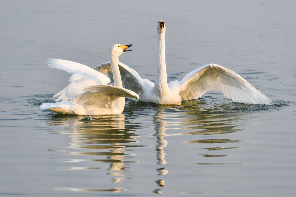 在山西平陸黃河濕地保護(hù)區(qū),一批批來自西伯利亞的野生大天鵝陸續(xù)飛抵,開始越冬。據(jù)悉,自10月底起,大天鵝已開始分批抵達(dá)黃河濕地,進(jìn)入12月后數(shù)量明顯增加,目前該區(qū)域觀測(cè)到的越冬天鵝已超5000只,到明年1、2月份可達(dá)上萬只。它們悠然自得的身影,為黃河岸畔增添了一道靈動(dòng)的風(fēng)景線。