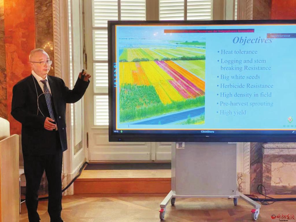 2024 年7 月,武祥云在德國(guó)藜麥論壇上發(fā)言。受訪者供圖