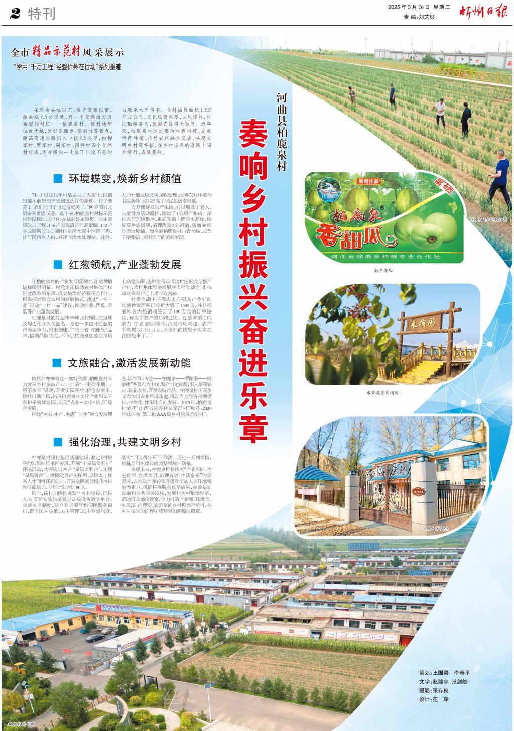 在河曲縣城以東、樓子營鎮(zhèn)以南,距縣城7.5公里處,有一個充滿活力與希望的村莊——柏鹿泉村。該村地理位置優(yōu)越,緊鄰羅圈堡、娘娘灘等景點,距離高速公路出入口僅2.5公里,由柳家村、賈家村、周家村、圍畔村四個自然村組成,因寺暖溝一土崖下川流不息的白鹿泉水而得名。全村幅員面積1333平方公里,文化底蘊深厚,民風淳樸,村民勤勞善良,旅游資源得天獨厚。近年來,柏鹿泉村通過整治村容村貌、發(fā)展特色種植、推動農(nóng)旅融合發(fā)展、共建文明鄉(xiāng)村等舉措,在鄉(xiāng)村振興的道路上闊步前行,成績斐然。 ■ 環(huán)境蝶變,煥新鄉(xiāng)村顏值 “村子里這幾年可是發(fā)生了大變化,以前想都不敢想能享受到這么好的條件。村子變美了,我們的日子也過得更美了?!?0歲的村民周奮笑著感嘆道。近年來,柏鹿泉村對標示范村建設(shè)標準,全力補齊基礎(chǔ)設(shè)施短板。實施民居改造工程,146戶實現(xiàn)清潔能源取暖,152戶完成廁所改造,同時推進污水集中治理工程,讓居民污水入網(wǎng),并建立污水處理站。此外,大力開展垃圾分類回收處理,改善農(nóng)村環(huán)境與衛(wèi)生條件,切實提高了居民生活幸福感。 為方便群眾生產(chǎn)生活,村里增設(shè)了老人、兒童健身活動器材,修建了1公里產(chǎn)業(yè)路。深化人居環(huán)境整治,重新改造白鹿泉水源地,恢復原生態(tài)景觀,清理改造2處河道,新增30組分類垃圾桶。如今的柏鹿泉村山青水綠,成為干凈整潔、文明宜居的美好家園。 ■ 紅蔥領(lǐng)航,產(chǎn)業(yè)蓬勃發(fā)展 在柏鹿泉村的產(chǎn)業(yè)發(fā)展版圖中,紅蔥種植堪稱耀眼明星。村黨支部借助農(nóng)村集體產(chǎn)權(quán)制度改革的東風,成立集體經(jīng)濟股份合作社,積極探索契合本村的發(fā)展模式,通過“一鄉(xiāng)一業(yè)”帶動“一村一品”建設(shè),推動紅蔥、西瓜、香瓜等產(chǎn)業(yè)蓬勃發(fā)展。 柏鹿泉村的紅蔥味辛辣、耐儲藏,在當?shù)丶爸苓叺貐^(qū)久負盛名。為進一步提升紅蔥的市場競爭力,村里創(chuàng)建了“鳴三省 柏鹿泉”品牌,借助品牌效應,不僅讓柏鹿泉紅蔥在市場上站穩(wěn)腳跟,還輻射帶動周邊村莊形成完整產(chǎn)業(yè)鏈,為村集體經(jīng)濟發(fā)展注入強勁動力,也帶動眾多農(nóng)戶走上增收致富路。 村委會副主任周志忠介紹說:“我們的紅蔥種植面積已經(jīng)擴大到了1600畝,并且提前和各大經(jīng)銷商簽訂了100萬元的訂單協(xié)議,解決了農(nóng)戶的后顧之憂。紅蔥多銷往內(nèi)蒙古、寧夏、陜西等地,深受市場歡迎。農(nóng)戶平均增收四五萬元,鄉(xiāng)親們的錢袋子實實在在鼓起來了?!?/p> ■ 文旅融合,激活發(fā)展新動能 依托白鹿神泉這一獨特資源,柏鹿泉村大力發(fā)展鄉(xiāng)村旅游產(chǎn)業(yè)。打造“一里荷花塘、十里不夜谷”景觀,開發(fā)田園民宿、特色農(nóng)家樂、燒烤自助廣場,拓展白鹿泉水文化產(chǎn)業(yè)和親子農(nóng)耕采摘體驗園,實現(xiàn)“農(nóng)業(yè)+文化+旅游”綜合發(fā)展。 圍繞“生態(tài)、生產(chǎn)、生活”“三生”融合發(fā)展理念,以“西口古渡——柏鹿泉——羅圈堡——娘娘灘”各景點為主線,整合當?shù)刭Y源,引入景觀農(nóng)業(yè)、設(shè)施農(nóng)業(yè),開發(fā)農(nóng)特產(chǎn)品。柏鹿泉村正逐步成為休閑農(nóng)業(yè)旅游基地,推動當?shù)亟?jīng)濟向規(guī)?;?、主體化、休閑化方向發(fā)展。2019年,柏鹿泉村榮獲“山西省旅游扶貧示范村”稱號,2020年被評為“第二批AAA級鄉(xiāng)村旅游示范村”。 ■ 強化治理,共建文明鄉(xiāng)村 柏鹿泉村強化基層基礎(chǔ)建設(shè),制定《村規(guī)民約》,組織傳承好家風,開展“十星級文明戶”評選活動,共評選出79戶“星級文明戶”,實現(xiàn)“星級管理”。發(fā)揮黨員帶頭作用,返聘本土優(yōu)秀人才回村任職創(chuàng)業(yè),開展全民素質(zhì)提升培訓和技能培訓,今年計劃培訓80人。 同時,該村加快推進數(shù)字鄉(xiāng)村建設(shè),已投入15萬元安裝旅游景點監(jiān)控設(shè)備數(shù)字平臺。完善養(yǎng)老制度,建立養(yǎng)老餐廳和便民服務窗口,健全民主決策、民主管理、民主監(jiān)督制度,落實“四議兩公開”工作法。通過一系列舉措,將基層組織建設(shè)成為堅強戰(zhàn)斗堡壘。 展望未來,柏鹿泉村將按照“產(chǎn)業(yè)興旺、生態(tài)宜居、鄉(xiāng)風文明、治理有效、生活富?!钡目傄螅酝苿赢a(chǎn)業(yè)轉(zhuǎn)型升級和實施人居環(huán)境整治為重點,鞏固拓展脫貧攻堅成果,完善基礎(chǔ)設(shè)施和公共服務設(shè)施,發(fā)展壯大村集體經(jīng)濟,帶動群眾增收致富,全力打造產(chǎn)業(yè)強、環(huán)境美、鄉(xiāng)風淳、治理安、農(nóng)民富的鄉(xiāng)村振興示范村,在鄉(xiāng)村振興的征程中續(xù)寫更加輝煌的篇章。 策劃:王國梁 李春平 文字:趙臻宇 張劍雄 攝影:張存良 設(shè)計:范 琛 (責任編輯:盧相?。?/span> |