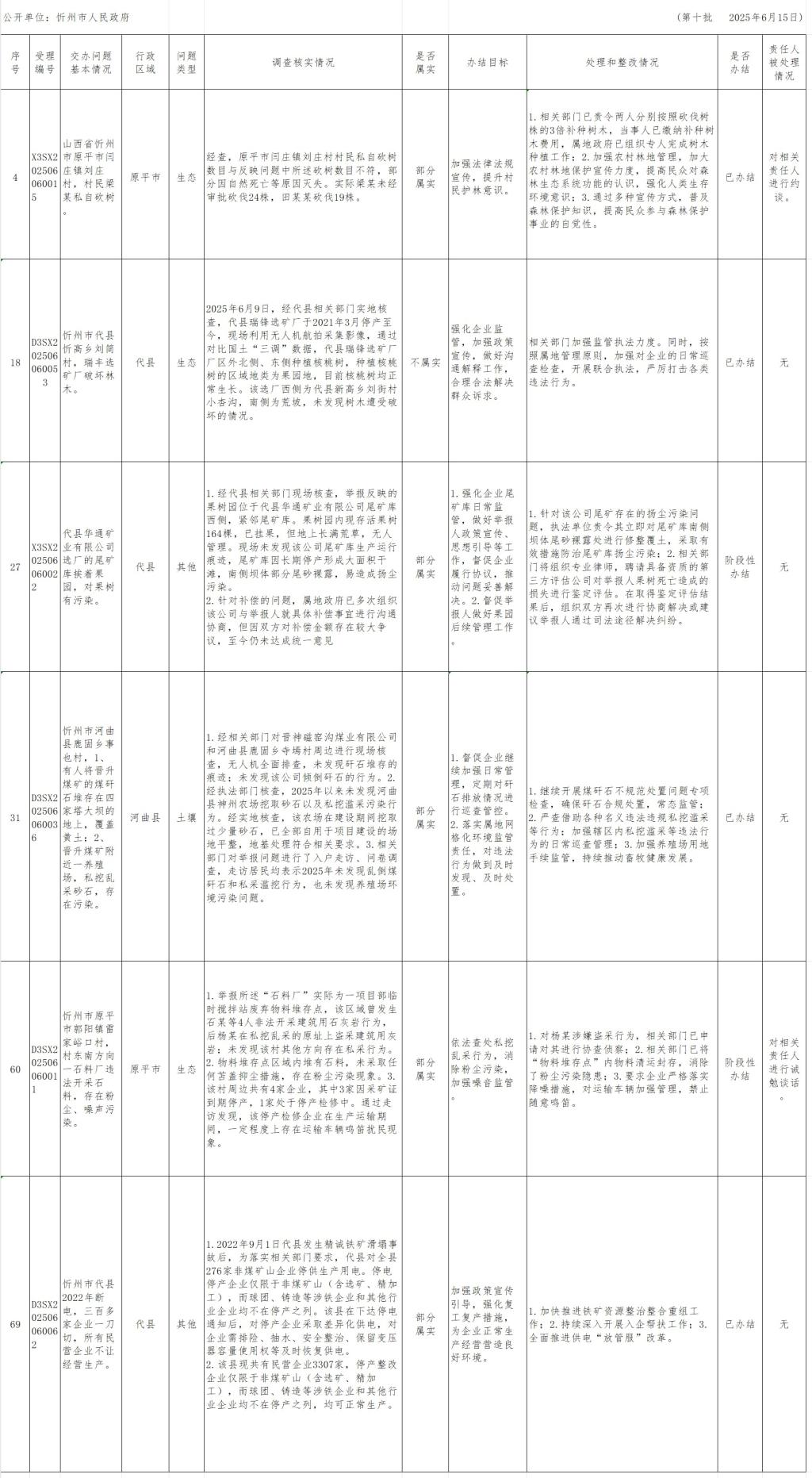 中央生態(tài)環(huán)境保護(hù)督察組群眾信訪舉報(bào)轉(zhuǎn)辦和邊督邊改公開(kāi)情況一覽表