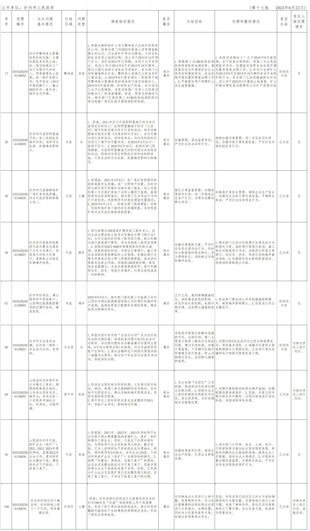 中央生態(tài)環(huán)境保護(hù)督察組群眾信訪舉報(bào)轉(zhuǎn)辦和邊督邊改公開情況一覽表(第十七批)