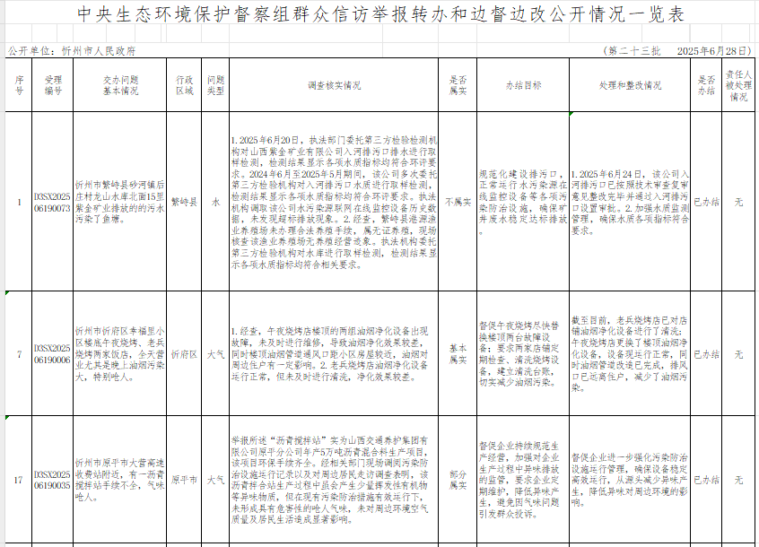 中央生態(tài)環(huán)境保護督察組群眾信訪舉報轉辦和邊督邊改公開情況一覽表(第二十三批)