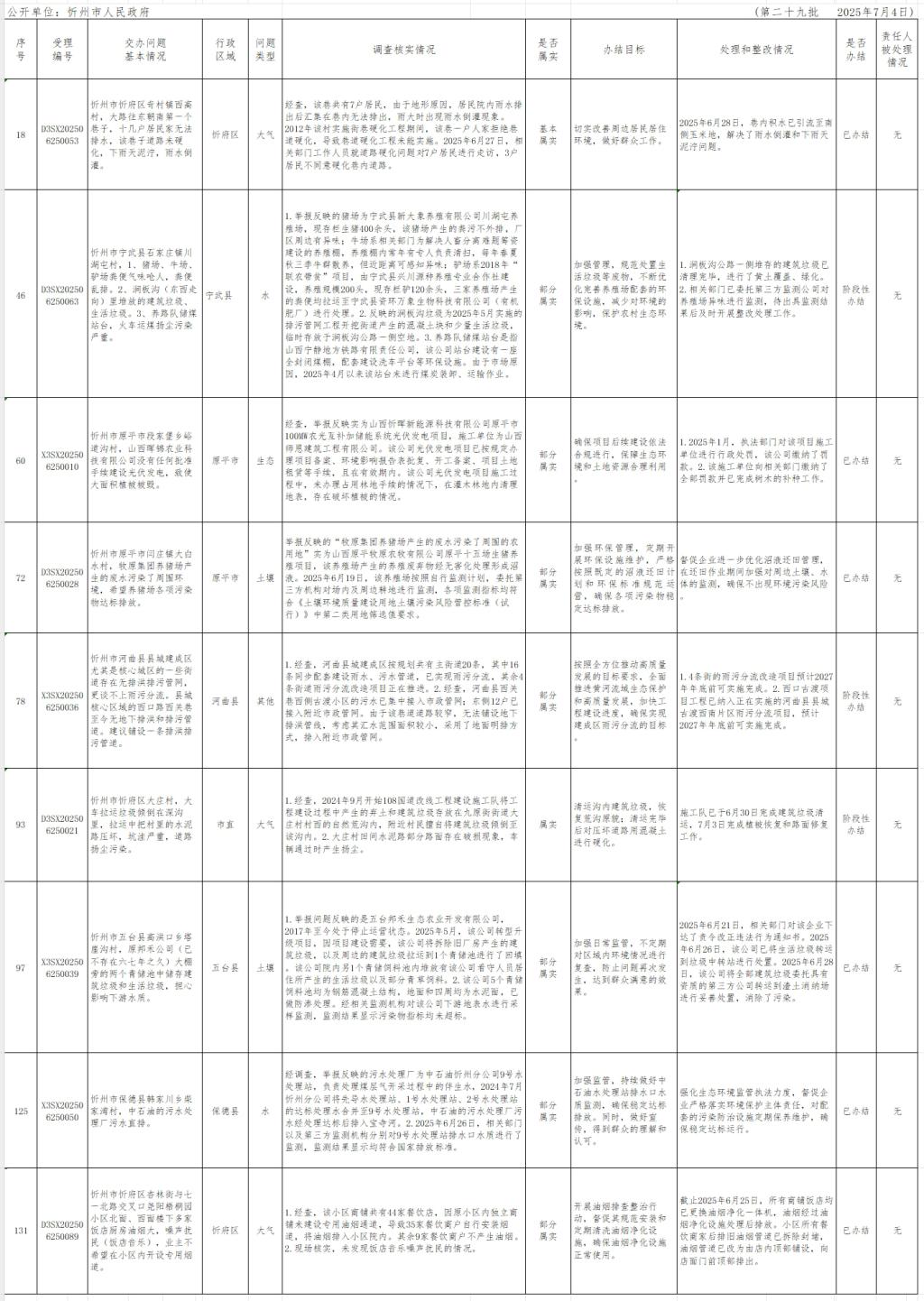 中央生態(tài)環(huán)境保護督察組群眾信訪舉報轉辦和邊督邊改公開情況一覽表(第二十九批)
