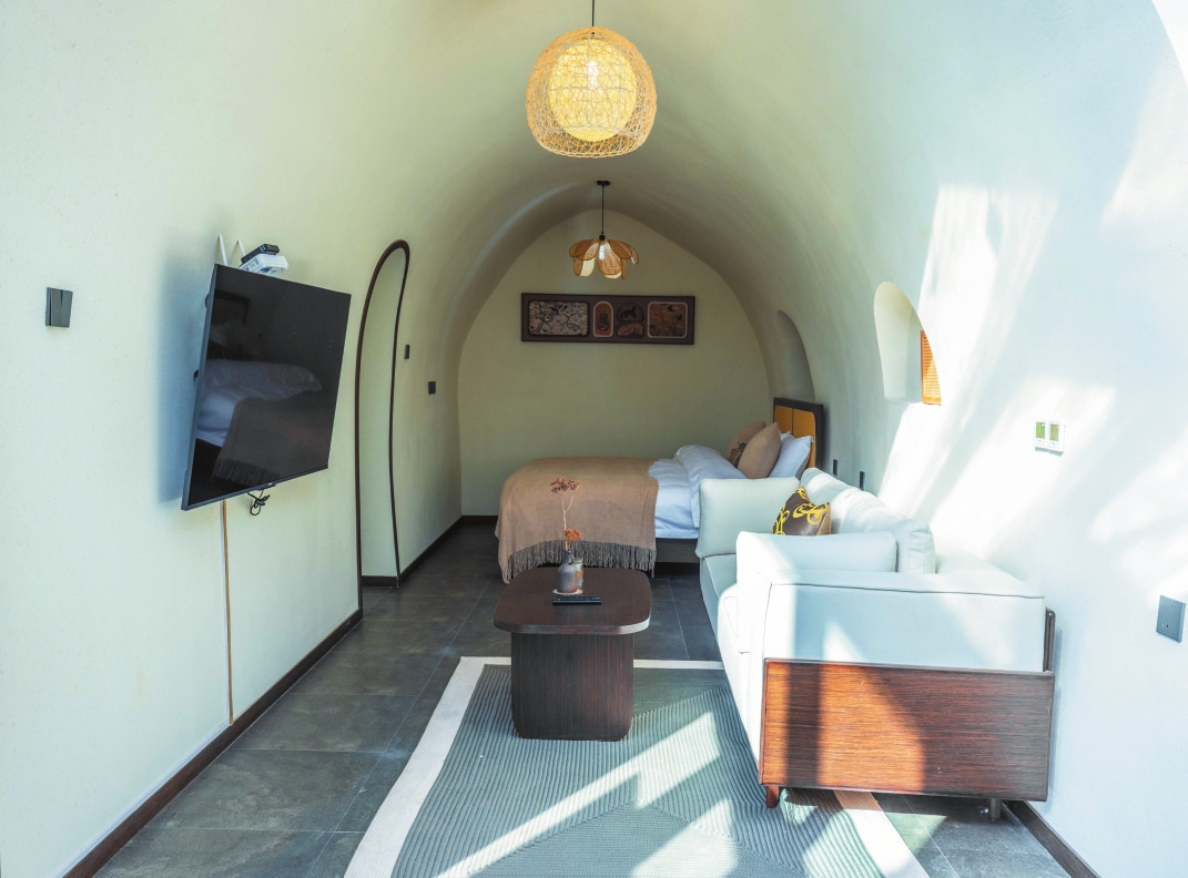 設計獨特的三層小院子,是游客喝茶、露營、抄經(jīng)、健身的好去處。民宿于2024年2月9日(大年三十)試營業(yè),共有22間不同主題的客房,節(jié)假日期間每天客滿,平時的入住率在80%以上,深受游客歡迎。(劉耀 宮可欣)