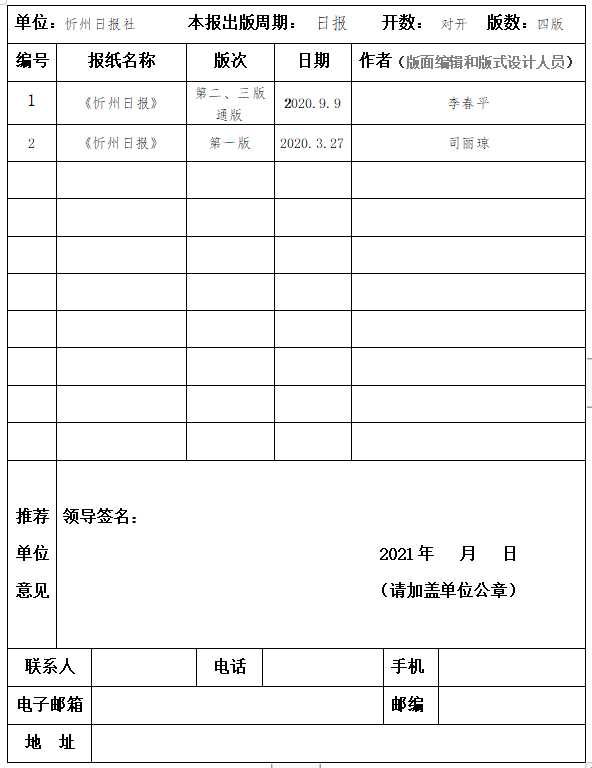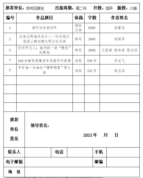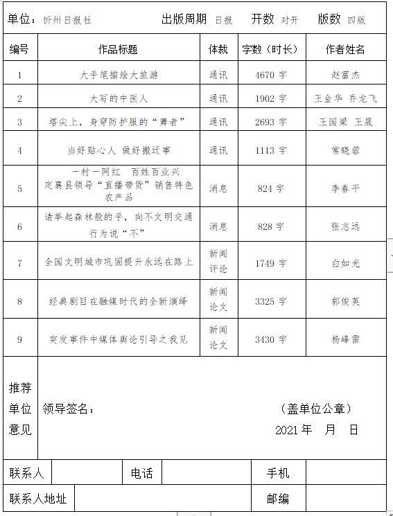 經忻州日報社編委會研究決定,以下作品擬推薦申評第三十屆山西新聞獎,現(xiàn)予以公示。有反對意見者,請將反對意見書面報至統(tǒng)籌部。