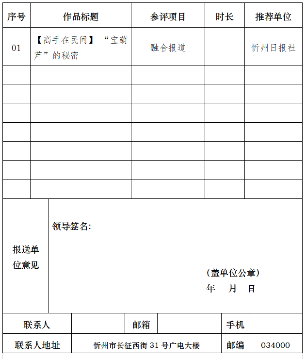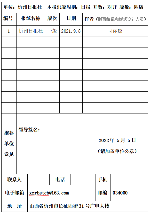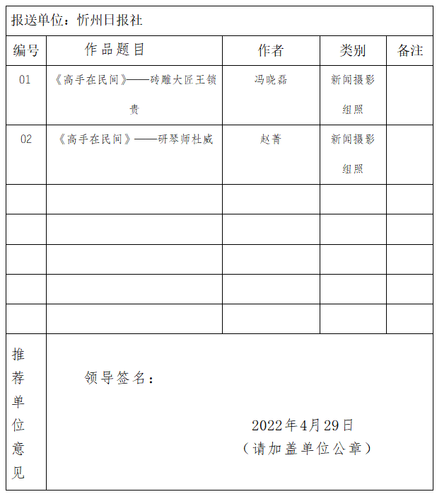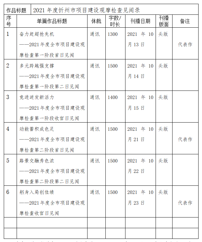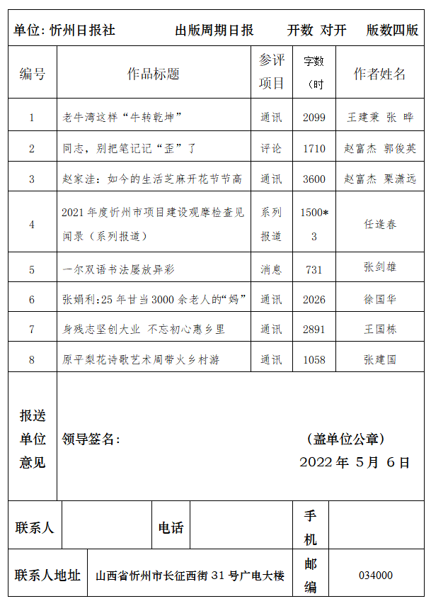 經(jīng)忻州日報(bào)社編委會研究決定,以下作品擬推薦申評第三十一屆山西新聞獎,現(xiàn)予以公示。有反對意見者,請將反對意見書面報(bào)至統(tǒng)籌部。