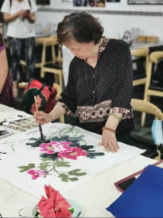 正在學(xué)習(xí)國(guó)畫創(chuàng)作的社區(qū)老年人。 求是記者 韓辰 攝