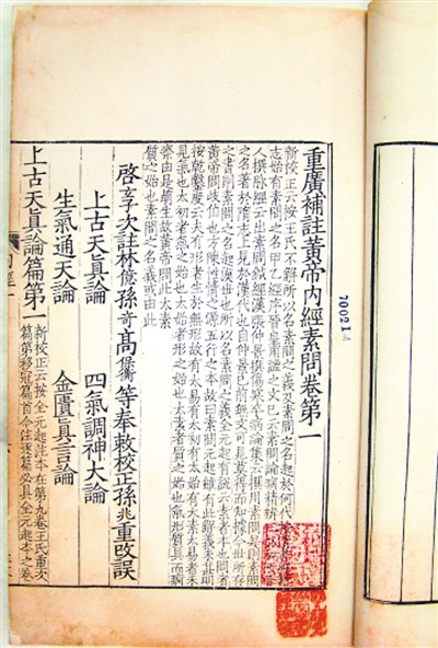 明嘉靖二十九年重廣補注黃帝內(nèi)經(jīng)素問二十四卷,甘肅省圖書館藏?!饵S帝內(nèi)經(jīng)》提出對瘟疫要早發(fā)現(xiàn)早治療,治療后防止復發(fā)。
