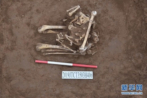 這是在河南濟源柴莊遺址發(fā)現(xiàn)的罕見人祭遺存(資料照片)。新華社發(fā)(河南省文物考古研究院供圖)
