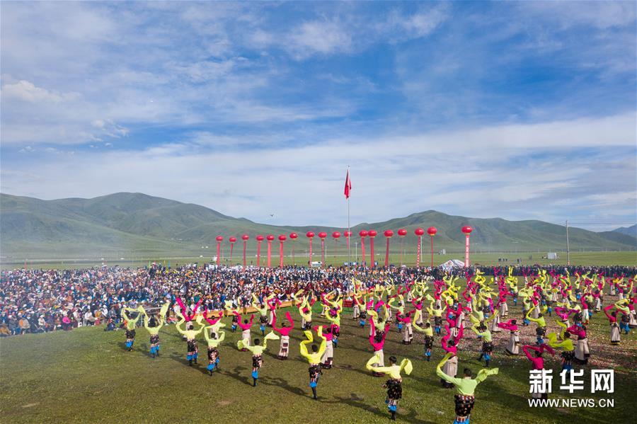 8月6日,當(dāng)?shù)厝罕娫诒硌菸璧浮睹利惖慕瘃R色達》。8月6日至8日,四川甘孜山地文化旅游節(jié)系列活動之一的色達金馬文化節(jié)在四川省色達縣扎青塘草原舉辦。當(dāng)?shù)厝罕娚碇?jié)日盛裝載歌載舞、歡聚一堂,文藝表演、賽馬、傳統(tǒng)服飾展演、非遺展示等活動精彩紛呈。 近幾年,當(dāng)?shù)卣罅ν苿游穆谩⑥r(nóng)旅、牧旅融合發(fā)展,全域旅游豐富多彩,成為當(dāng)?shù)孛撠毐夹】档闹匾ナ?。新華社記者 江宏景 攝