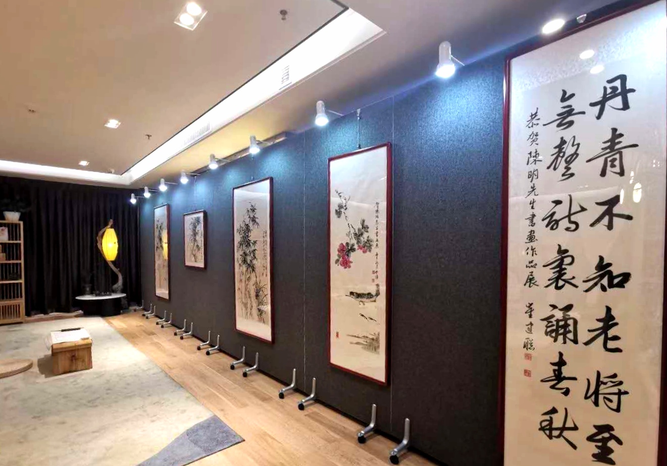 這便是近期在晉中市辰興頤郡美學(xué)中心舉辦的陳明書畫作品展。布展別具一格,作品精美大氣,共展出了我省書畫藝術(shù)家陳明先生的20多幅字畫,他的蘭竹繪畫和書法作品清新、俊逸、淡雅、高古,讓參觀者贊不絕口。