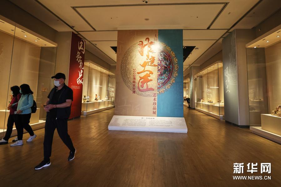 12月30日,人們在海南省博物館參觀2020海南自貿(mào)港大國非遺工匠藝術珍品展。近日,2020海南自貿(mào)港大國非遺工匠藝術珍品展在海南省博物館開展,展覽分為大國非遺工匠藝術珍品展和技藝傳承展兩大展區(qū)。珍品展展出北京景泰藍、雕漆、景德鎮(zhèn)陶瓷、海南工藝美術代表作品等具有代表性的非物質(zhì)文化遺產(chǎn)作品,在技藝傳承展區(qū),非遺手工藝人現(xiàn)場展演展示黎錦、苗繡、雙面繡、木雕等技法。(新華社記者 張麗蕓 攝)