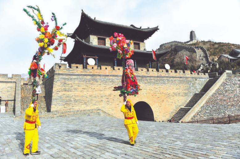 2月23日,在山西省代縣雁門(mén)關(guān),郝永?。ㄗ螅┰谶M(jìn)行撓閣表演。