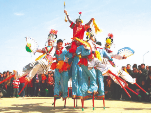 閣蹺類。以道具制作精妙神奇、表演技巧驚險(xiǎn)動(dòng)人為廣大群眾喜愛(ài),其中晉南地區(qū)的最有代表性。閣蹺主要分推棍、背棍、劃棍、高蹺。