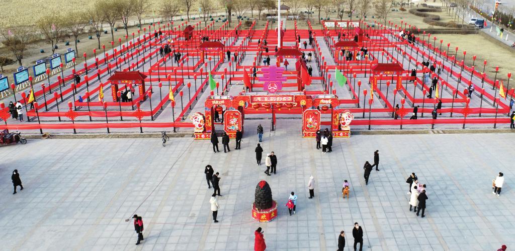 九曲黃河燈游會(huì),是河曲縣古老的民間文化活動(dòng),因其路線三回九轉(zhuǎn),所以寓意是天下黃河九十九道彎。燈游會(huì)場(chǎng)從上面鳥瞰就是一個(gè)方陣圖,陣內(nèi)有72桿旗,365盞明亮的燈籠,象征著在新的一年里天天亮亮堂堂,全年紅紅火火。河曲縣自古就有“有月無燈不算春”的說法。流傳至今、長(zhǎng)盛不衰的大型民間活動(dòng)——九曲黃河燈游會(huì)一直以來深受百姓喜愛。它像是一場(chǎng)集體的狂歡,見證了黃河岸邊河曲人民最虔誠的新年祝福,承載著河曲人民新年風(fēng)調(diào)雨順、萬事勝意的美好祈愿,講述著黃河沉淀千年的傳奇故事。 本報(bào)通訊員