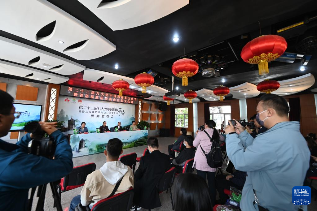 當日,第二十二屆八大處中國園林茶文化節(jié)暨首屆福建柘榮高山白茶文化周在北京舉行新聞發(fā)布會。據(jù)介紹,該活動將于4月28日至5月3日在北京八大處公園舉行。期間,福建省柘榮縣多家茶企業(yè)將在八大處公園內(nèi)設(shè)臺擺桌,沏茶迎客,供游客品嘗高山白茶,感受白茶特有文化。(新華社記者 李俊東 攝)