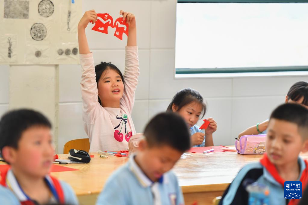 5月15日,在長沙市天心區(qū)紅衛(wèi)小學(xué),學(xué)生在剪紙藝術(shù)課上展示作品。 近年來,湖南省長沙市天心區(qū)紅衛(wèi)小學(xué)積極落實(shí)“雙減”政策,聯(lián)合專業(yè)機(jī)構(gòu)設(shè)計(jì)了豐富的課后服務(wù)內(nèi)容,包含剪紙藝術(shù)、手工風(fēng)箏、傳統(tǒng)服飾設(shè)計(jì)、趣味臉譜、景泰藍(lán)掐絲琺瑯畫、拓印、皮影戲等,讓學(xué)生零距離感受非遺,激發(fā)學(xué)生對(duì)傳統(tǒng)文化的興趣,推動(dòng)非遺的傳承,助力“雙減”。(新華社記者 陳澤國 攝) (責(zé)任編輯:盧相?。?/span> |