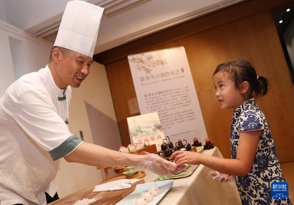 7月11日,在位于法國巴黎的聯(lián)合國教科文組織總部,南京雨花茶傳承人陳盛峰演示制作雨花茶。
