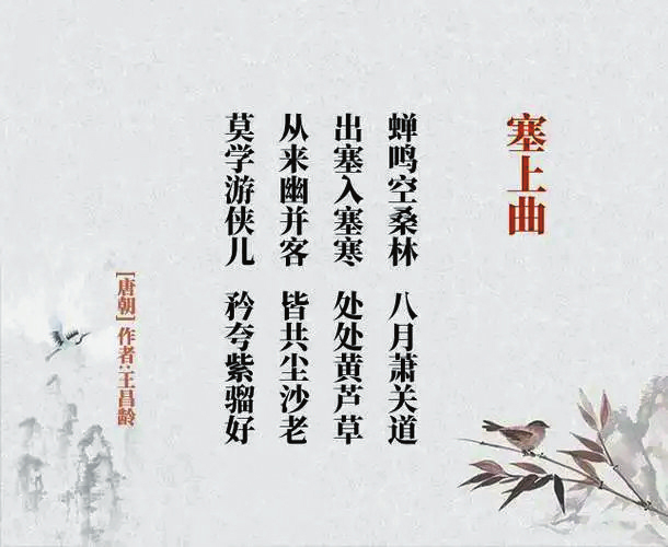 《塞上曲》 王昌齡 李頎、王昌齡這兩位盛唐時(shí)邊塞詩人的代表,不知是否曾結(jié)伴同游雁門關(guān),但可以確定的是兩人都選擇了以雁門為題。 《塞下曲》唐(李頎):“黃云雁門郡,日暮風(fēng)沙里。千騎黑貂裘,皆稱羽林子。金笳吹朔雪,鐵馬嘶云水。帳下飲蒲萄,平生寸心是?!?/p> 《塞上曲》唐(王昌齡):“蟬鳴空桑林,八月蕭關(guān)道。出塞入塞寒,處處黃蘆草。從來幽并客,皆共塵沙老。莫學(xué)游俠兒,矜夸紫騮好?!痹娭械娜稀⑷?,說穿了就是關(guān)外和關(guān)內(nèi)。但,其實(shí)景象沒什么特別,黃云、風(fēng)沙、駿馬、朔雪、美酒、桑林、關(guān)道、蘆草、沙場(chǎng),也似乎只有這些才能更符合邊塞詩人的審美。而“雁門關(guān)”成了李頎、王昌齡這對(duì)好友的共同命題。