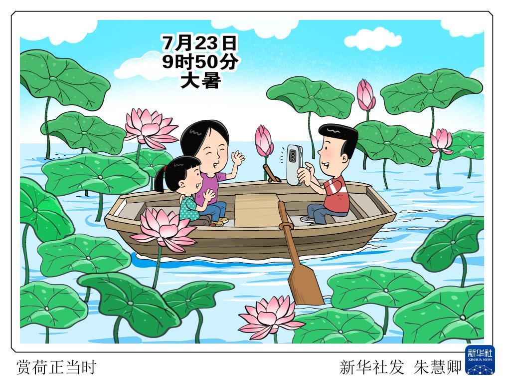 新華社天津7月22日電(記者周潤(rùn)?。靶∈畈凰銦?,大暑三伏天?!北本r(shí)間7月23日9時(shí)50分將迎來二十四節(jié)氣中夏季的最后一個(gè)節(jié)氣——大暑。此時(shí)節(jié),雖然溫高而氣濕,但也是荷花開得最盛的時(shí)候,青翠欲滴的荷葉、亭亭玉立的蓮蓬、紅白輝映的荷花,令人賞心悅目。