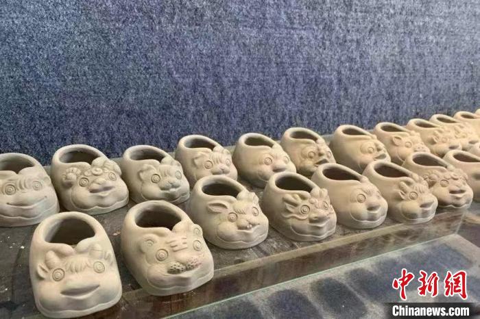 圖為用山東臨清特有的“蓮花土”燒制而成的貢磚文創(chuàng)產(chǎn)品虎頭鞋。呂盼盼 攝
