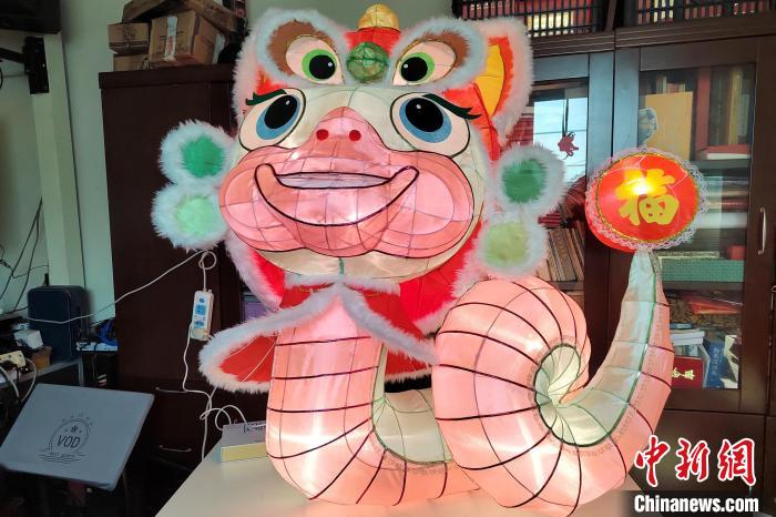 圖為楊銘制作的2025年生肖花燈。 (受訪者供圖)