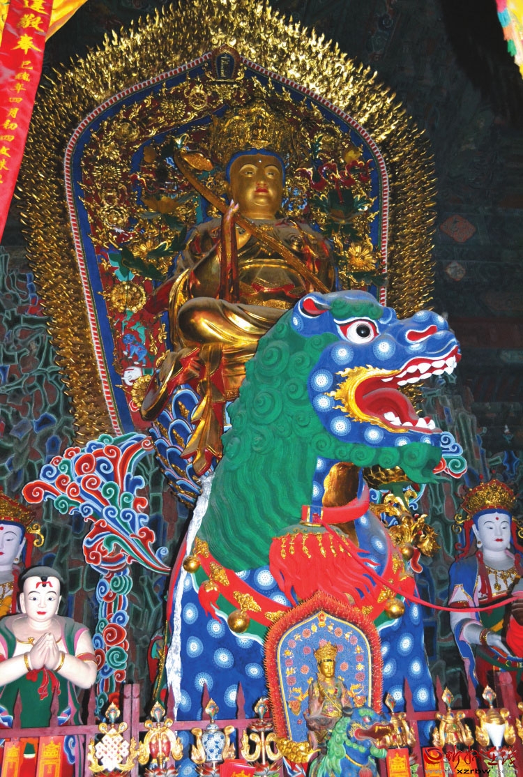 五臺山殊像寺大文殊殿里騎著狻猊的文殊菩薩塑像 高峰毅攝