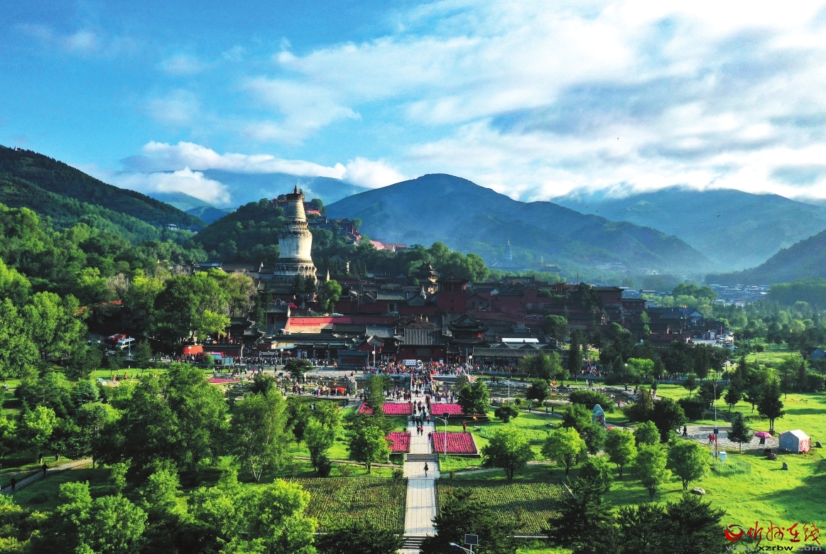五臺山位居中國四大佛教名山之首,被稱為“金五臺”,為文殊菩薩的道場。五臺山并非一座山,它是坐落于“華北屋脊”之上的一系列山峰群,最高海拔3061米。五座山峰環(huán)抱整片區(qū)域,峰頂平坦如臺,故名五臺。又因山上氣候多寒,盛夏仍不見炎暑,別稱清涼山。