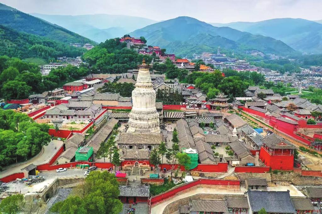 踏入五臺山,首先映入眼簾的便是那高聳入云的大白塔,它宛如一位圣潔的巨人,莊重而肅穆地矗立在塔院寺內(nèi),成為五臺山的標(biāo)志性建筑。大白塔通身潔白如雪,在陽光的照耀下熠熠生輝,仿佛散發(fā)著佛光的祥瑞之氣。遠(yuǎn)遠(yuǎn)望去,那龐大的塔身與藍(lán)天白云相互映襯,構(gòu)成了一幅寧靜而神圣的畫面,讓人不禁心生敬畏。