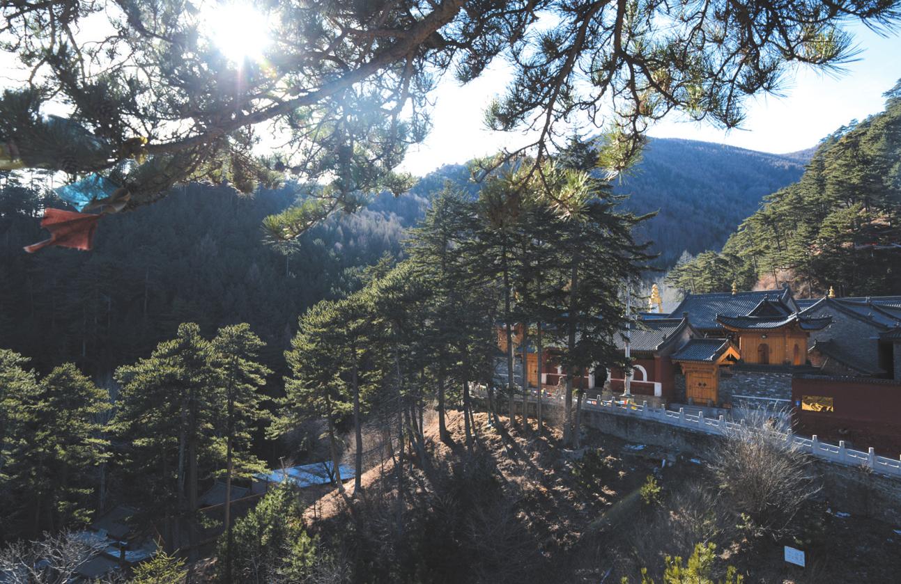 在海拔2796米的五臺(tái)山東臺(tái)頂,居高望遠(yuǎn),日出景象更加浩瀚壯闊,朝霞滿天,萬(wàn)道金光射向大地,云海、雪峰、金殿、金像相互輝映。