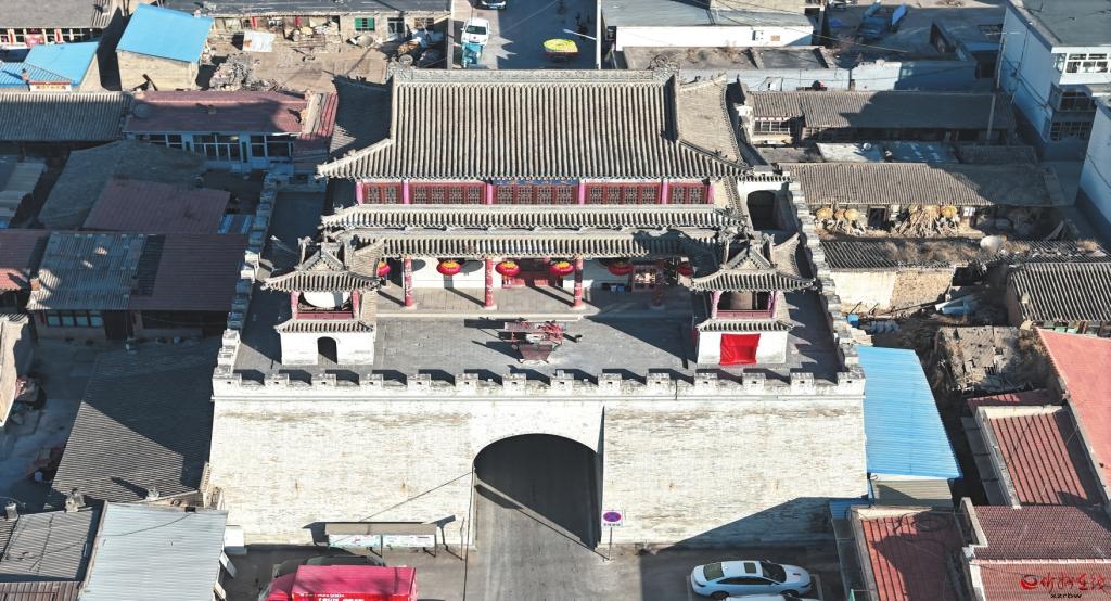 據(jù)重修鼓樓碑和《道光、光緒繁峙縣志》記載,該鼓樓始建于明代萬歷十四年(1586),清康熙二十七年(1688)維修,清乾隆二十三年(1758)增設(shè)鐘樓、鼓樓,光緒二年(1878)重修,現(xiàn)存建筑為明、清建筑。城臺(tái)呈方形,條石筑基,青磚鋪面,內(nèi)為夯土。臺(tái)基中設(shè)拱券門洞,南北貫通。城樓內(nèi)供奉文昌神,又稱為文昌閣,面寬五間,進(jìn)深四椽,七檁前后廊構(gòu)架,二層三檐歇山頂,上層斗拱一斗二升交麻葉,下層明間設(shè)拱券門,次間圓形窗,四角施通天柱,內(nèi)設(shè)樓梯,可登二層。