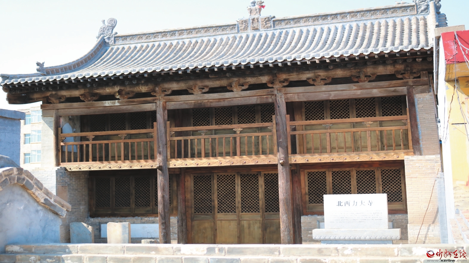 北西力大寺位于定襄縣晉昌鎮(zhèn)北西力村中,坐北朝南,東西長11.1米、南北寬8.4米,占地面積約93平方米。據(jù)梁架題記記載為明萬歷四十三年(1615)所建。該寺沿中軸線原建有山門、過廳、正殿,兩側(cè)建有東西配房?,F(xiàn)僅存正殿,為二層樓閣式結(jié)構(gòu),面寬三間,進(jìn)深四椽,前設(shè)廊,單檐懸山頂,五檁架結(jié)構(gòu)。二層廊前兩側(cè)有人物壁畫約4平方米。2015年8月25日公布為市級文物保護(hù)單位。
