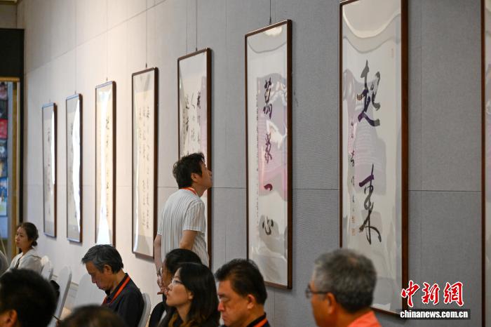 中新網(wǎng)昆明9月8日電 (陳靜)夏末秋初,在云南昆明西山艾維美術(shù)館,前進(jìn)的號(hào)角——《聶耳音樂(lè)作品》勞偉專題書法展散發(fā)筆墨書香,如蛟龍游動(dòng)的行草書法間,“前進(jìn),前進(jìn),前進(jìn)進(jìn)”“告別南洋”等聶耳經(jīng)典作品次第展開。