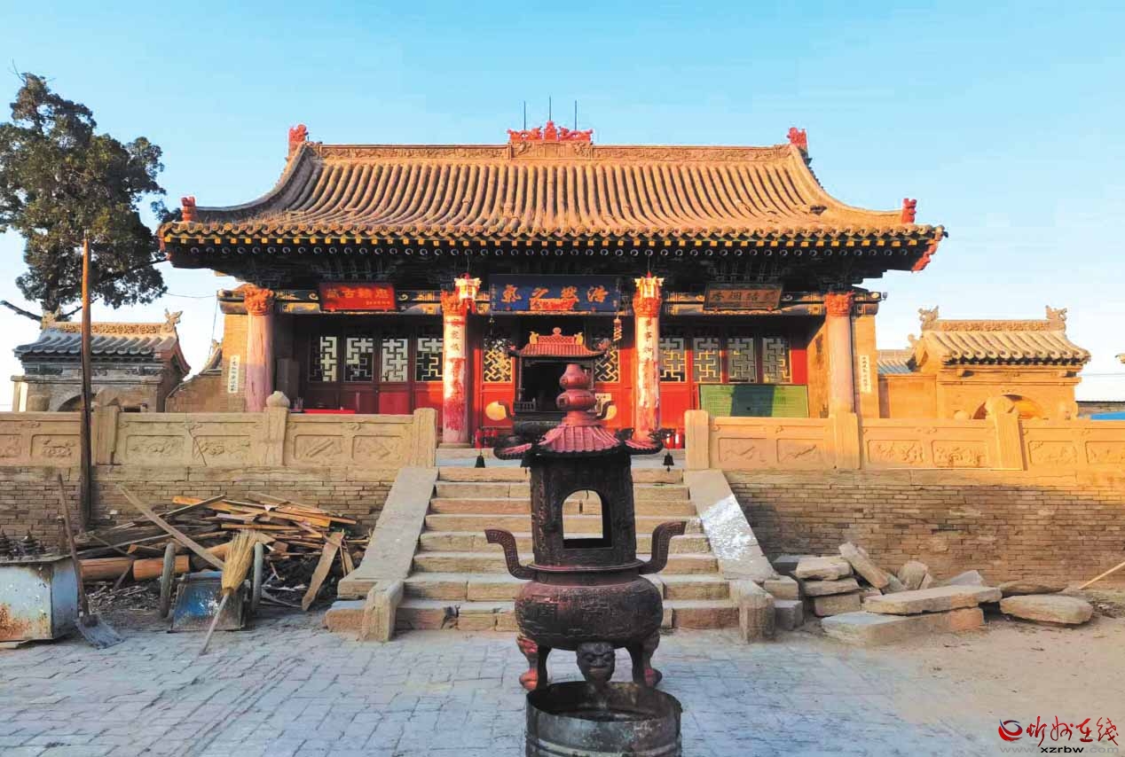東關(guān)關(guān)帝廟位于原平市崞陽(yáng)鎮(zhèn)東關(guān)村,距崞陽(yáng)城東門(mén)外約100米。始建年代不詳,據(jù)正殿梁架題記載,清咸豐三年(1953)重修,現(xiàn)存建筑為清代遺構(gòu)。東西長(zhǎng)25.5米,南北寬87米,占地面積2218平方米。坐北朝南,二進(jìn)院落布局,中軸線建有影壁、大門(mén)、正殿和圣母殿,兩側(cè)為東西配殿。正殿磚砌臺(tái)基,前設(shè)月臺(tái),其上三面設(shè)勾欄、望柱,欄上雕有各種花卉、如意及禽獸。殿身面寬三間,進(jìn)深六椽,單檐懸山頂。七檁前后廊式構(gòu)架,斗拱五踩重翹,平身科每間一攢,出45度斜拱,前檐各間均設(shè)四扇六抹萬(wàn)字紋格扇門(mén),殿內(nèi)新塑像3尊。圣母殿磚砌臺(tái)基,殿身面寬三間,進(jìn)深三椽,單檐硬山頂,四檁前廊式構(gòu)架。明間四扇六抹萬(wàn)字紋格扇門(mén),次間為格扇窗。殿內(nèi)新塑像3尊。廟內(nèi)存清代重修關(guān)帝廟碑3通,殘碑1通,石獅2對(duì)。1981年列為原平市(縣級(jí))文物保護(hù)單位。2022年列為第三批市級(jí)文物保護(hù)單位。
