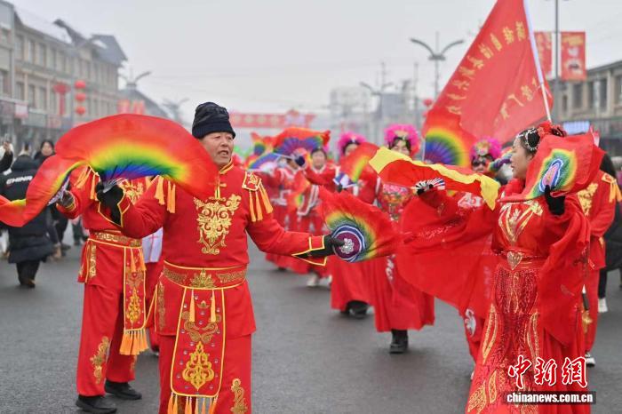中新社長(zhǎng)春2月24日電 題:雪映嗩吶傳街巷 東北秧歌舞星霜