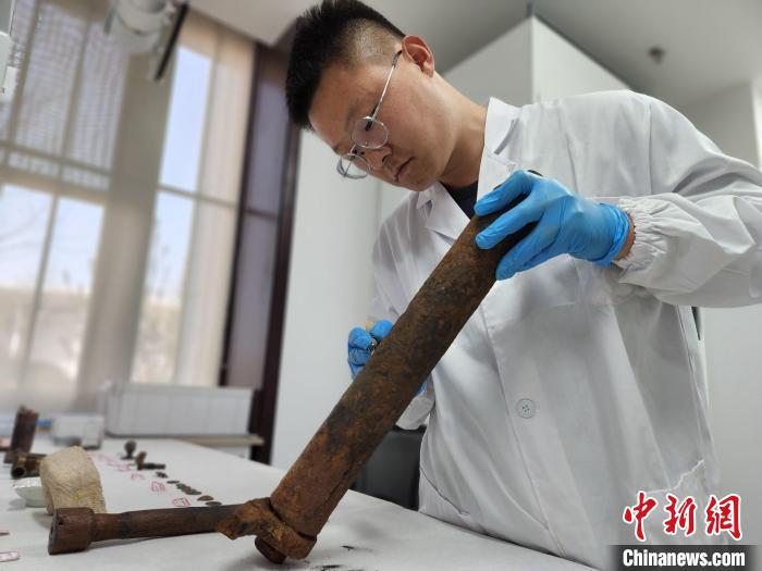 資料圖:文物修復師用刻刀剔除一件船構件表面的銹蝕物。 趙曉 攝