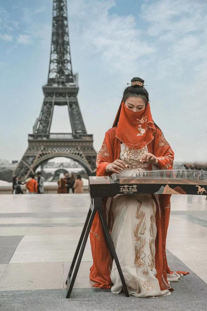 下一年的新學(xué)期,彭靜旋從國內(nèi)運(yùn)來古箏,精心挑選曲目,開始在街頭彈奏。從那之后,歷史悠久的波爾多大劇院廣場前,出現(xiàn)了一個(gè)穿著漢服、戴著面紗的東方女孩,她撥弄琴弦,時(shí)而清脆、時(shí)而渾厚、時(shí)而悠揚(yáng)的音樂自在流淌。