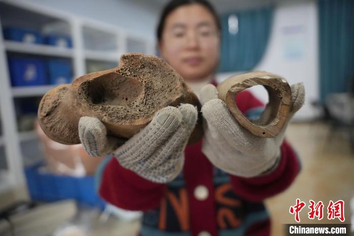 據(jù)中國人民大學(xué)歷史學(xué)院考古文博系從事科技考古研究的吳曉桐介紹,這次發(fā)現(xiàn)的牛、羊、馬、豬等動物骨骼,很多有切割、打磨、鉆孔的加工痕跡,屬于骨器半成品,推測這些骨骼被用來制作骨器。