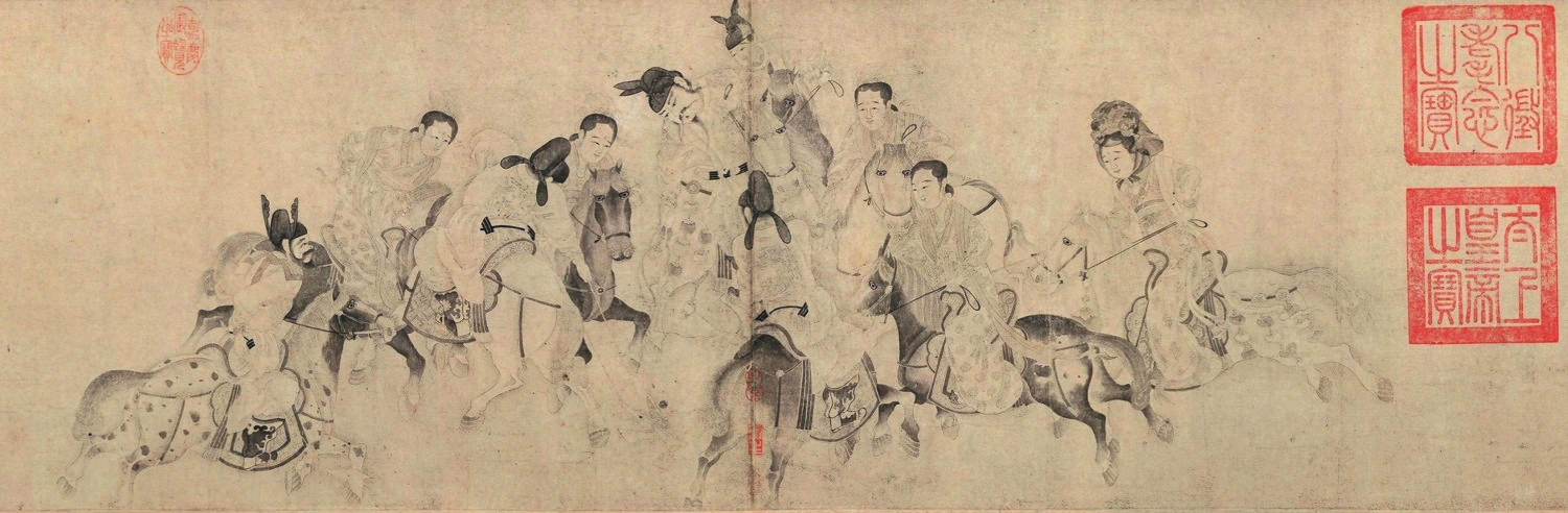 馬球的流行,也曾起到交流媒介的作用。遼代陳及之所繪《便橋會(huì)盟圖》,記錄了唐太宗和東突厥頡利可汗在渭水便橋會(huì)盟時(shí),大唐和突厥進(jìn)行馬球比賽的場(chǎng)景。唐中宗時(shí),吐蕃派使者迎接金城公主入藏,使團(tuán)中有馬球高手。彼時(shí)吐蕃請(qǐng)求與大唐比賽馬球,唐中宗派出的選手被吐蕃打敗,接著又派出當(dāng)時(shí)還是臨淄王的唐玄宗李隆基和嗣虢王李邕、駙馬楊慎交、駙馬武延秀等人再與吐蕃比賽,獲得勝利。據(jù)《封氏聞見(jiàn)記》載:“玄宗東西驅(qū)突,風(fēng)回電激,所向無(wú)前,吐蕃功不獲施。”