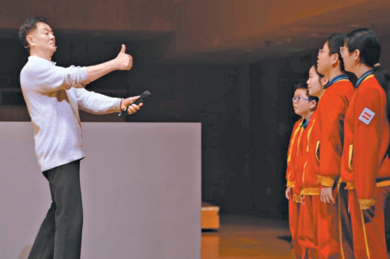 現(xiàn)場互動環(huán)節(jié)更是高潮迭起。多位青少年登臺朗誦《木蘭辭》,濮存昕始終耐心傾聽,不時點(diǎn)頭稱贊:“很好!肢體再放松點(diǎn),聲音可以再大點(diǎn)!”他總是先肯定孩子們的“天然天真”,再以專業(yè)眼光指出可提升之處,親自示范如何通過技術(shù)訓(xùn)練達(dá)到更自由的表達(dá)。這種既保護(hù)本真、又引導(dǎo)提升的教學(xué)理念,正是他反復(fù)強(qiáng)調(diào)的“平衡技巧訓(xùn)練與個性表達(dá),避免陷入機(jī)械化表演”的生動實(shí)踐。