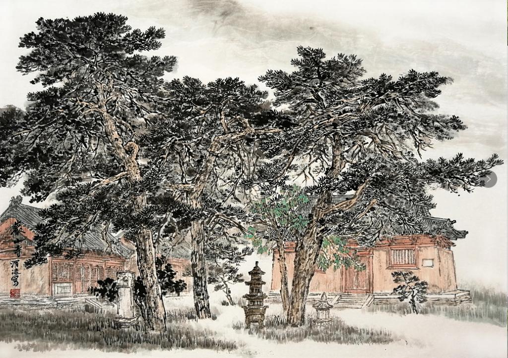 后來因?yàn)樗L畫上取得的成績,調(diào)到了忻府區(qū)文聯(lián)工作。條件好了,畫的畫更多了,畫風(fēng)依然樸實(shí)親切,給人一種視覺的舒適感。這幾年他是在一路前進(jìn)的,他筆下的線條清朗有力,墨色變化也更加豐富,畫中有了渾厚華滋的氣象。細(xì)看他的畫,樸實(shí)中蘊(yùn)藏著精巧,拙拙的行筆中偶露鋒厲,給畫面帶來活力生機(jī)。我們在一起寫生,他在畫面經(jīng)營上、構(gòu)圖處理上總能給人意想不到的驚喜。畫面虛實(shí)處理把握的恰到好處,又能準(zhǔn)確表現(xiàn)自然原貌的神采。于不知不覺中將自己的審美和情感融入了畫中,完成的寫生總比自然景色更加生動、更吸引人的目光,但又讓你看不出他是在哪里做了手腳。