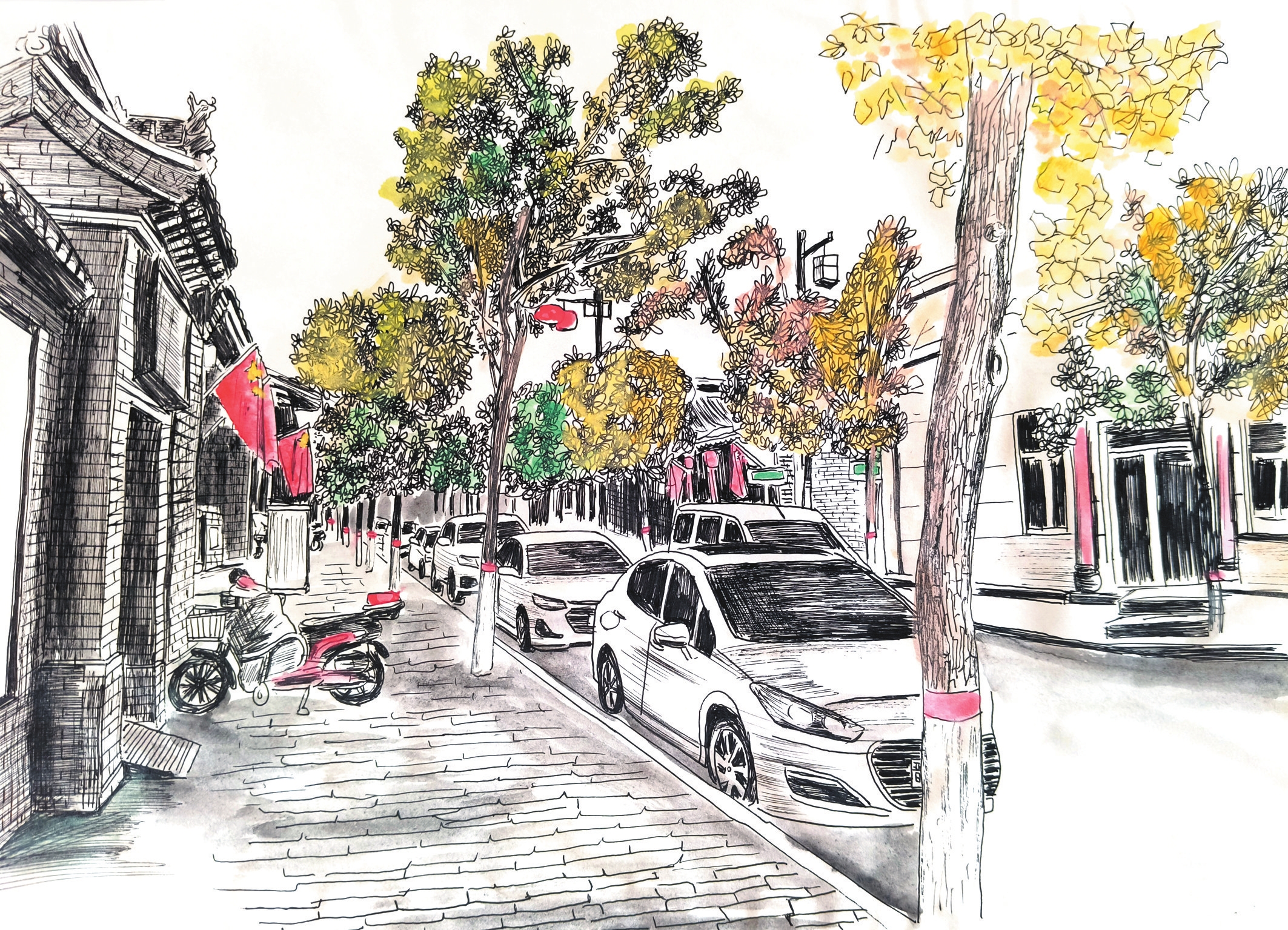 作為一種獨特的藝術(shù)形式,鋼筆畫以其細(xì)膩的線條、嚴(yán)謹(jǐn)?shù)臉?gòu)圖,通過控制握筆的速度和力度,畫出不同粗細(xì)的線條,從而表現(xiàn)物象。岢嵐縣美術(shù)教育工作者侯龍飛近年來通過鋼筆畫記錄生活、表達(dá)情感,他的系列鋼筆畫《忻州古城》《岢嵐街景》等作品描繪城市變遷與時代風(fēng)貌走紅網(wǎng)絡(luò)。