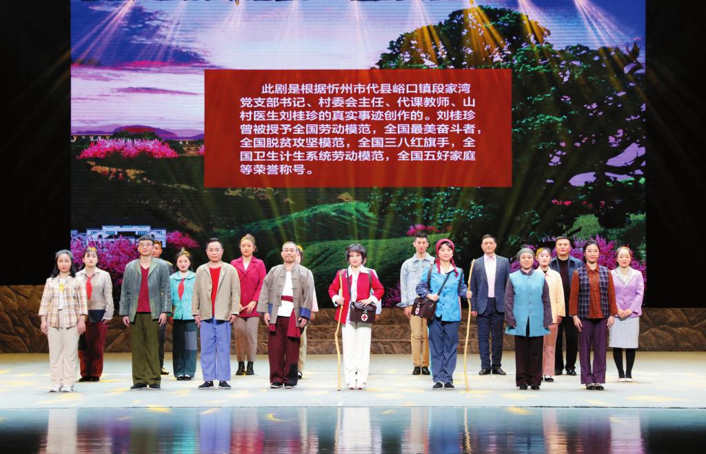 得知自己飾演女主角柳玉珍,演員蘇瑞芳背后做了很多功課,親自到段家灣與原型劉桂珍“零距離”接觸。聽完桂珍大姐的故事,蘇瑞芳內(nèi)心無比震撼,為了更好地塑造角色,一有空閑就拉著搭檔“開小灶”,反復(fù)打磨動作。“舞臺上的每個人物都有生活原型,每段劇情都是根據(jù)真實事件改編而來?!碧K瑞芳動容地說,“現(xiàn)實中桂珍大姐遇到的情況可能比舞臺上表現(xiàn)得更困難,但她卻始終不忘初心,扎根農(nóng)村,身兼‘四職’,承擔(dān)起脫貧攻堅領(lǐng)頭雁、治病救人好醫(yī)生、教書育人好老師、扎根基層好黨員等多重角色,以引領(lǐng)村民脫貧致富為己任,忠實踐行一名共產(chǎn)黨員的神圣使命。她身上的優(yōu)秀品質(zhì)值得我們每一個人學(xué)習(xí),我為自己能夠有機會飾演她感到驕傲自豪!”