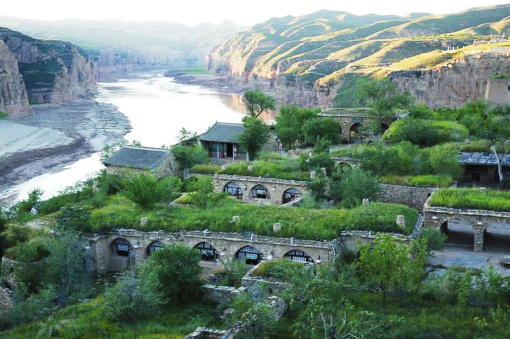 一眼望不到頭的長城從遠處山梁上綿延而來直達河邊。看不見激流奔涌,聽不見黃河濤聲,清清的河水在這里悠悠徜徉盤桓。如果說長城如父親般剛強有力,沉雄穩(wěn)健,黃河如母親般溫柔親切,寬懷博大,那寺溝恰如父母懷中幸福溫婉的小孩。寺溝慵懶地在河邊梳洗自己的容顏,連同身邊的長城倒影在粼粼的河水中,展現(xiàn)出難得的田園詩般的浪漫與柔情。山上長城夯土保持完整,有青銅群雕,旌旗獵獵,似將軍正在縱馬出巡。登墩臺四望,視野開闊,長城下人家炊煙裊裊,雞犬相聞。峽谷中游船往來,馬達轟鳴聲中幾只野鴨貼著河面飛向不遠的村子,飛向?qū)Π渡窖?。寺溝,一個把塞北風(fēng)光與江南水鄉(xiāng)有機融為一體的地方。