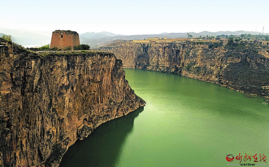 老牛灣三面環(huán)水,一面連山,呈牛頭形狀,古堡古村落聳峙在懸崖峭壁之上,古村房舍都采用當(dāng)?shù)厥膲酒龆?,石碾石磨隨處可見,石墻石院隨形而就,因此老牛灣還有石頭民俗博物館之稱。老牛灣的高臺(tái)之上,建有被譽(yù)為“黃河河防長(zhǎng)城第一堡”的老牛灣堡,守衛(wèi)著長(zhǎng)城與黃河。城堡北側(cè)的山崖邊,矗立著一座居高臨下俯瞰黃河的空心磚樓,它就是老牛灣的標(biāo)志望河樓。據(jù)《山西通志》載:老牛灣堡北至長(zhǎng)城0.5公里,明成化三年(1467)總兵王璽筑墻,崇禎九年(1636)兵備盧友竹建堡。望河樓屹立在這里已經(jīng)長(zhǎng)達(dá)近400年。史料記載:望河樓夏守邊而冬守河。夏季瞭望外敵從陸路過來,冬季河面封凍,敵人容易從冰面上來犯,如果發(fā)現(xiàn)敵人來襲,則用燃放狼煙的方式向上一級(jí)匯報(bào),望河樓以此保護(hù)一方平安。